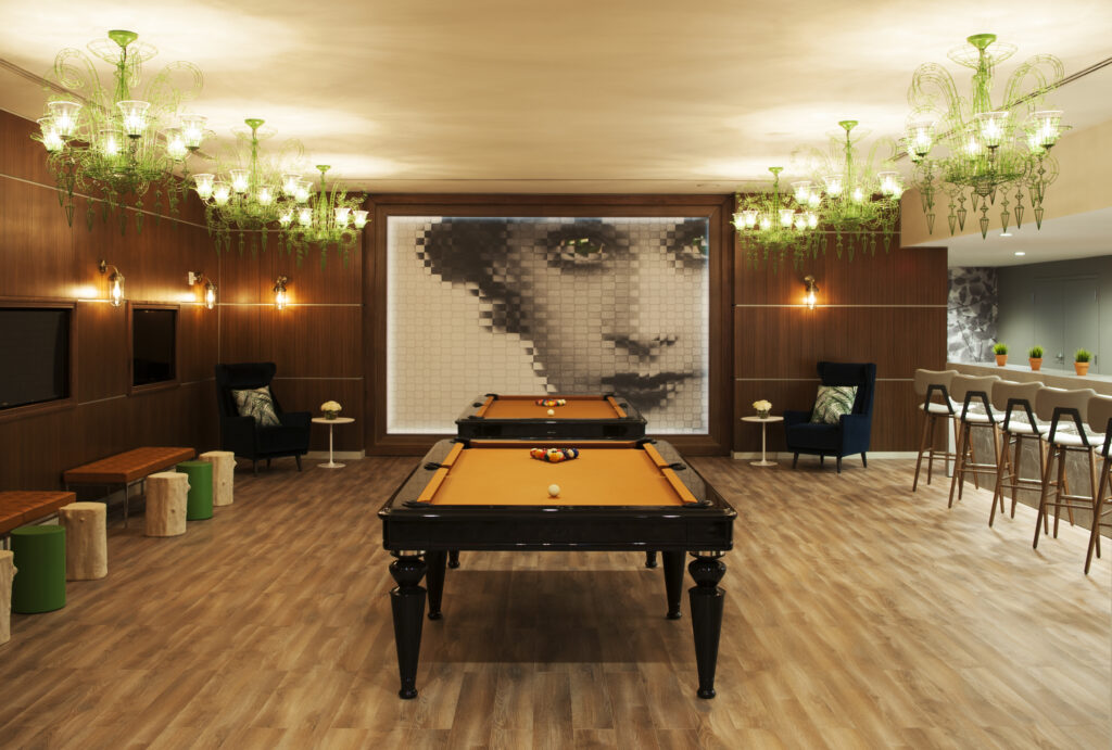 YOO on the Park, a new 25-story apartment complex on the edge of Piedmont Park, is remarkable not only for its luxurious amenities (saline pool, yoga studio, golf simulator, etc.), but for its high-style finishes. Of course, that’s to be expected given that YOO Studio is an international design firm cofounded by celebrity designer Philippe Starck, and model units are furnished by Cantoni (which provides new residents with discounts). Stylish, whimsical features include a six-story living wall on the 13th Street facade, Marcel Wanders–designed papier-mâché chandeliers, and a giant chess set on the amenity deck. To add local flavor, YOO created an oversized, digitized image of Scarlett O’Hara for the game room. Moss poodles at the entrance are named Busted, Belle, Scottie, and Peaches. Rents from $1,550.